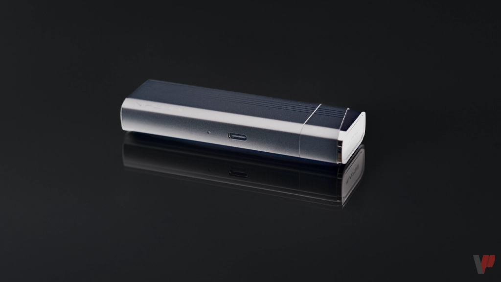 على الجانب الآخر، يسمح منفذ USB-C بالشحن السريع للبطارية المدمجة بسعة 1800 مللي أمبير. على الرغم من أن بطارية بود Klypse Plus ليست الأكبر بين أجهزة هذه الفئة، إلا أن الخرطوشة المرفقة مع الجهاز تتميز بكفاءة عالية في استهلاك الطاقة. يُمكنك استخدام الجهاز أثناء الشحن. يُشير مؤشر LED صغير إلى مستوى البطارية أثناء الشحن والاستخدام، ويتغير لونه تبعًا للمستوى.